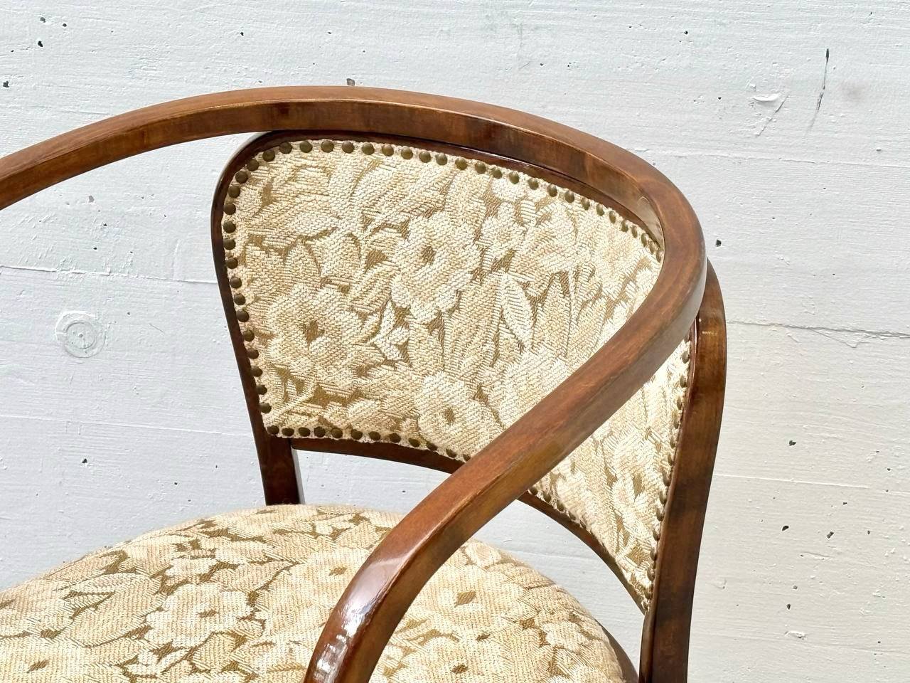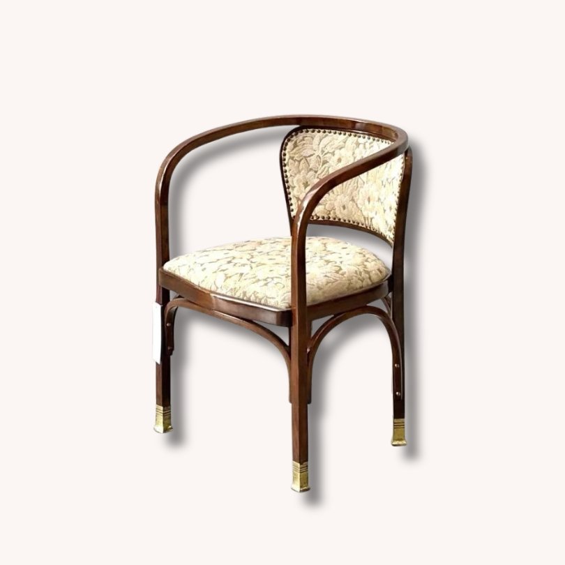 Bei diesem Möbelstück handelt es sich um einen historischen Armlehnstuhl, der dem österreichischen Architekten und Designer Gustav Siegel zugeschrieben wird.