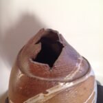 Zwei kleine Absplitterungen am oberen Rand, die jedoch die Eleganz des Objekts nicht beeinträchtigen