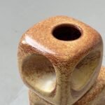 Die charakteristische Glasur in warmen Braun- und Beigetönen mit feiner, krakelierter Struktur verleiht dem Objekt eine lebendige Oberfläche und unterstreicht die plastische Wirkung. Durch die klare Geometrie in Kombination mit der organischen Glasur entsteht ein spannender Kontrast zwischen Strenge und Natürlichkeit. Ein dekoratives Statement-Piece mit starkem Bezug zur italienischen Studio-Keramik der 1970er Jahre.