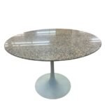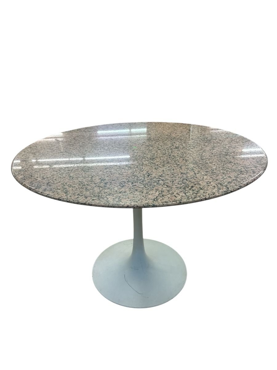 Dieser elegante Esstisch mit Granitplatte ist ein echter Hingucker! Das zeitlose Design passt perfekt in jede moderne Wohnung. Die weisse Basis bildet einen schönen Kontrast zur gemusterten Steinplatte. Ideal für gemütliche Dinnerabende oder aber such als stilvoller Arbeitsplatz.