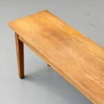 Zeitlos reduzierte Sitzbank aus massivem Buchenholz, gefertigt in der Schweiz um die 1970er Jahre. Die klare, funktionale Gestaltung mit rechteckiger Sitzfläche und geradlinigen, leicht konisch zulaufenden Beinen erinnert an klassische Werkstatt-, Schul- oder Beizenmöbel dieser Zeit. Die warme Holzmaserung verleiht der Bank eine ruhige, natürliche Ausstrahlung, während die solide Konstruktion auf Langlebigkeit und täglichen Gebrauch ausgelegt ist. Durch ihre schlichte Form lässt sich das Möbel vielseitig einsetzen – als Sitzbank im Eingangsbereich, am Esstisch oder als dekoratives Element im Wohnraum. Ein authentisches Stück Schweizer Alltagsdesign mit ehrlichem, funktionalem Charakter.