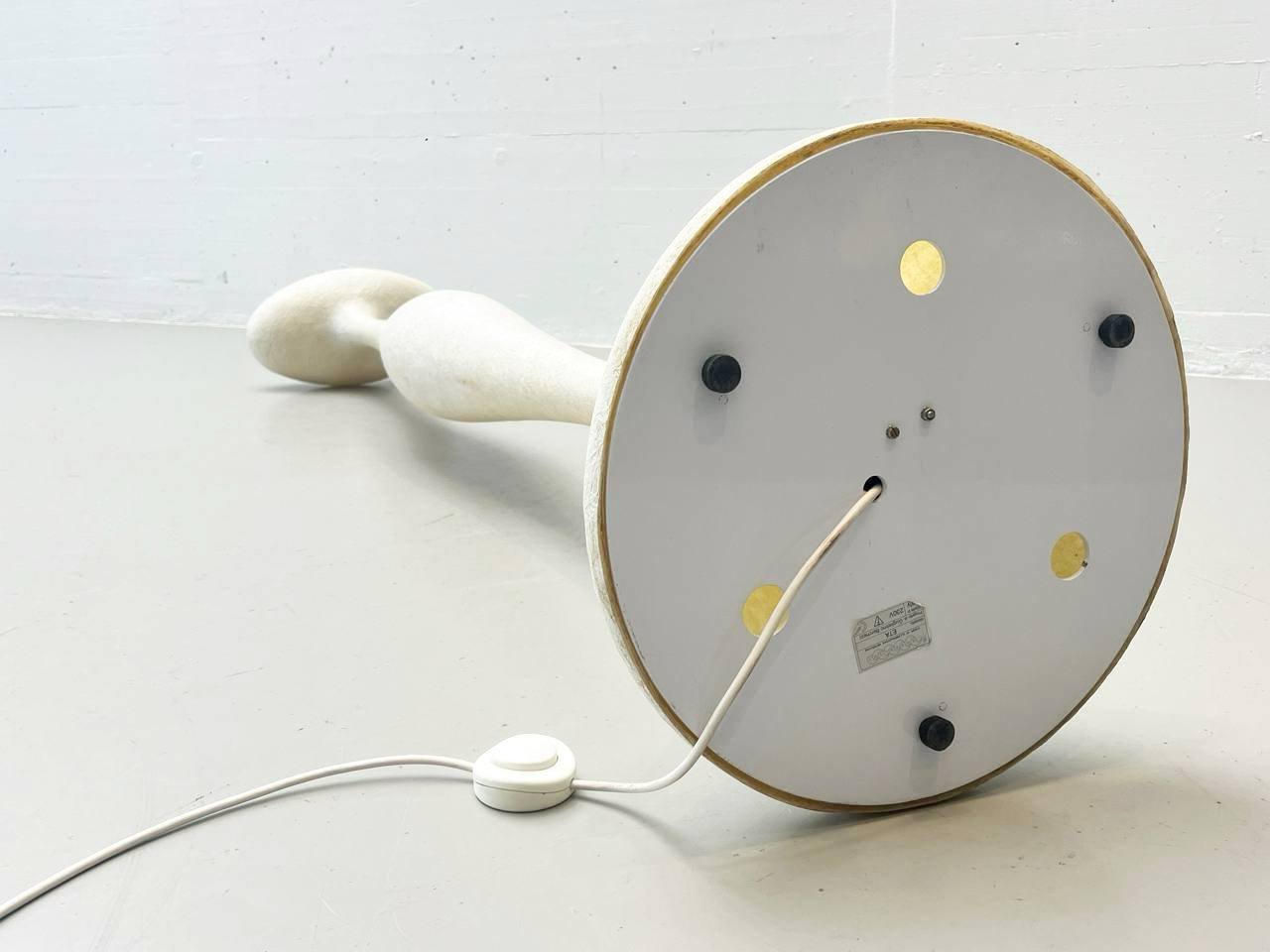 Zustand: Die Leuchte befindet sich in gutem Originalzustand mit leichten, altersbedingten Gebrauchsspuren an der Oberfläche, die typisch für das Material sind. Die Elektrik ist funktionsfähig, der Kabelschalter intakt und die Leuchte sofort einsatzbereit. Insgesamt präsentiert sich das Stück gepflegt und in authentischer Patina, was den skulpturalen Charakter zusätzlich unterstreicht.