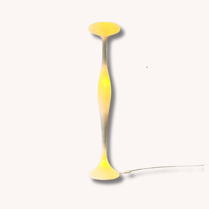 Die E.T.A. Stehleuchte von Guglielmo Berchicci für Kundalini gilt heute als ein Sammlerstück der 1990er-Jahre, da sie die Kombination aus organisch-skulpturalem Design und innovativer Materialnutzung (glasfaserverstärkter Kunststoff) exemplarisch zeigt. Kundalini hat sich mit genau solchen Entwürfen – experimentell, poetisch und zugleich funktional – einen festen Platz in der italienischen Designlandschaft gesichert.