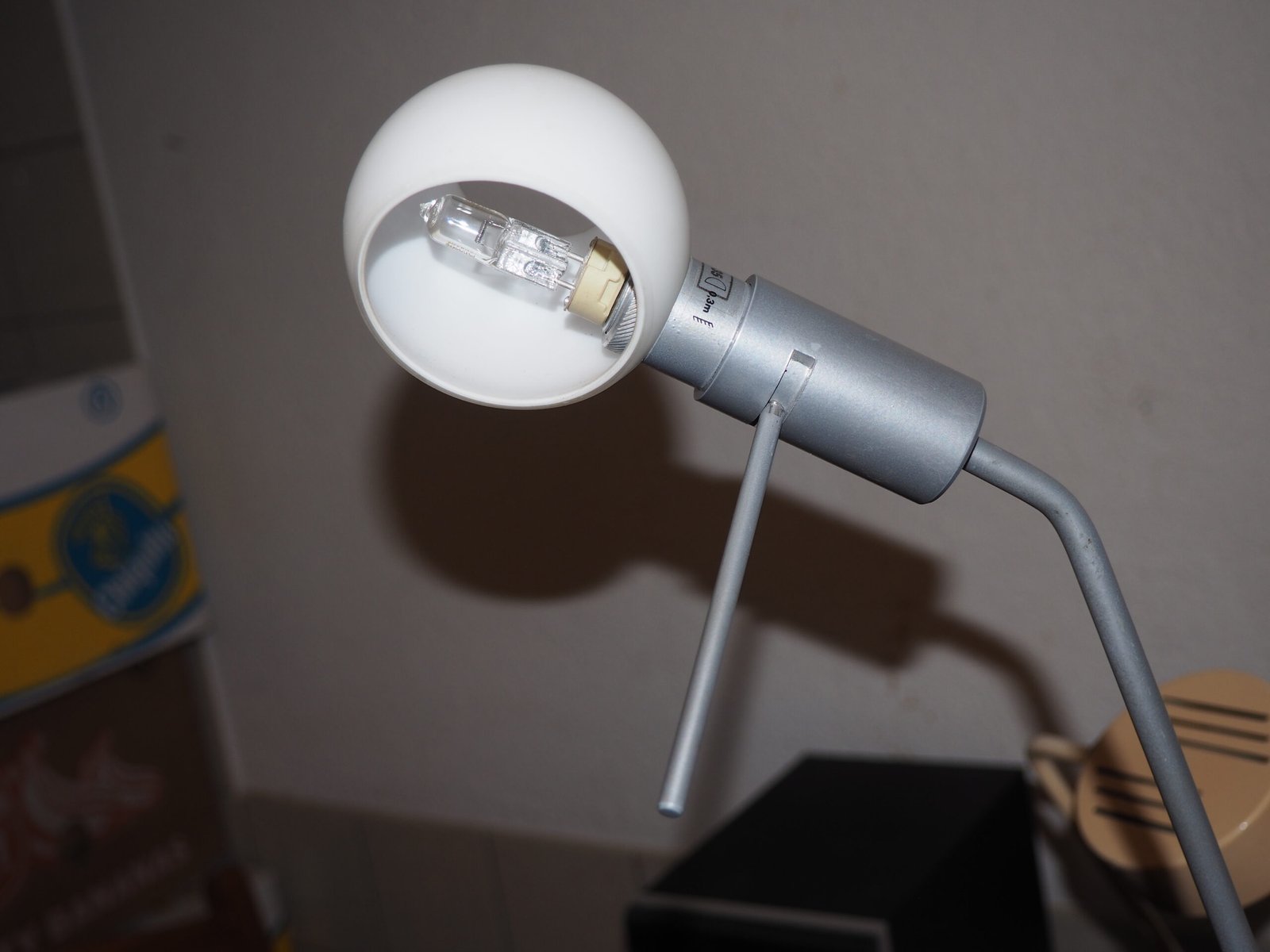 Schöner Zustand, 50 Watt 12 Volt Halogen Birne. Das originale Netzteil ist dabei aber defekt. Es wurde ein anderes 12 Volt Netzteil steckbar montiert.